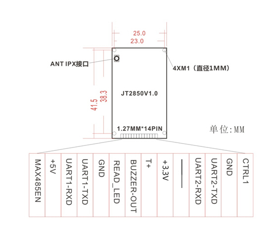 JT-2850 là một mô-đun đọc/ghi nhỏ gọn, tiêu thụ điện năng cực thấp, hỗ trợ giao thức ISO 18000-6C. Nó tương thích với anten gốm 40x40mm và có thể đọc các loại thẻ trắng thông thường. Phạm vi đo có thể đạt 60~80cm.Nó có thể dễ dàng được tích hợp vào các thiết bị cầm tay như máy tính bảng và PDA để mở rộng chức năng RFID cho các thiết bị này, và được sử dụng rộng rãi trong các lĩnh vực khác như quản lý hậu cần, kiểm tra chất lượng sản phẩm, quản lý nhân sự, v.v.
