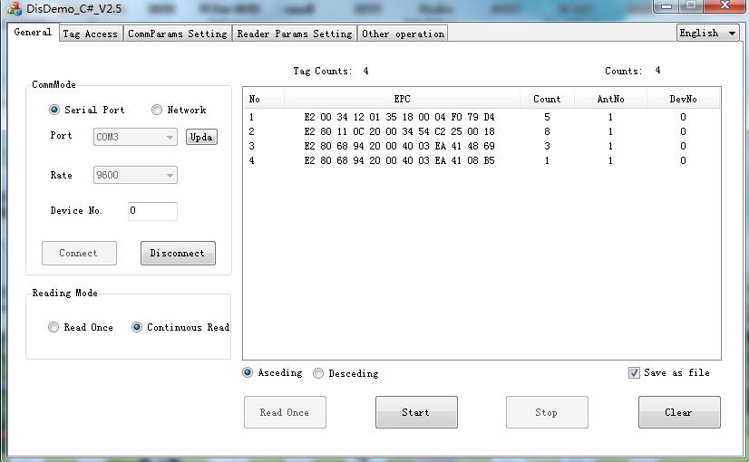 Giao thức | ISO18000-6C (EPC C1 GEN2) |