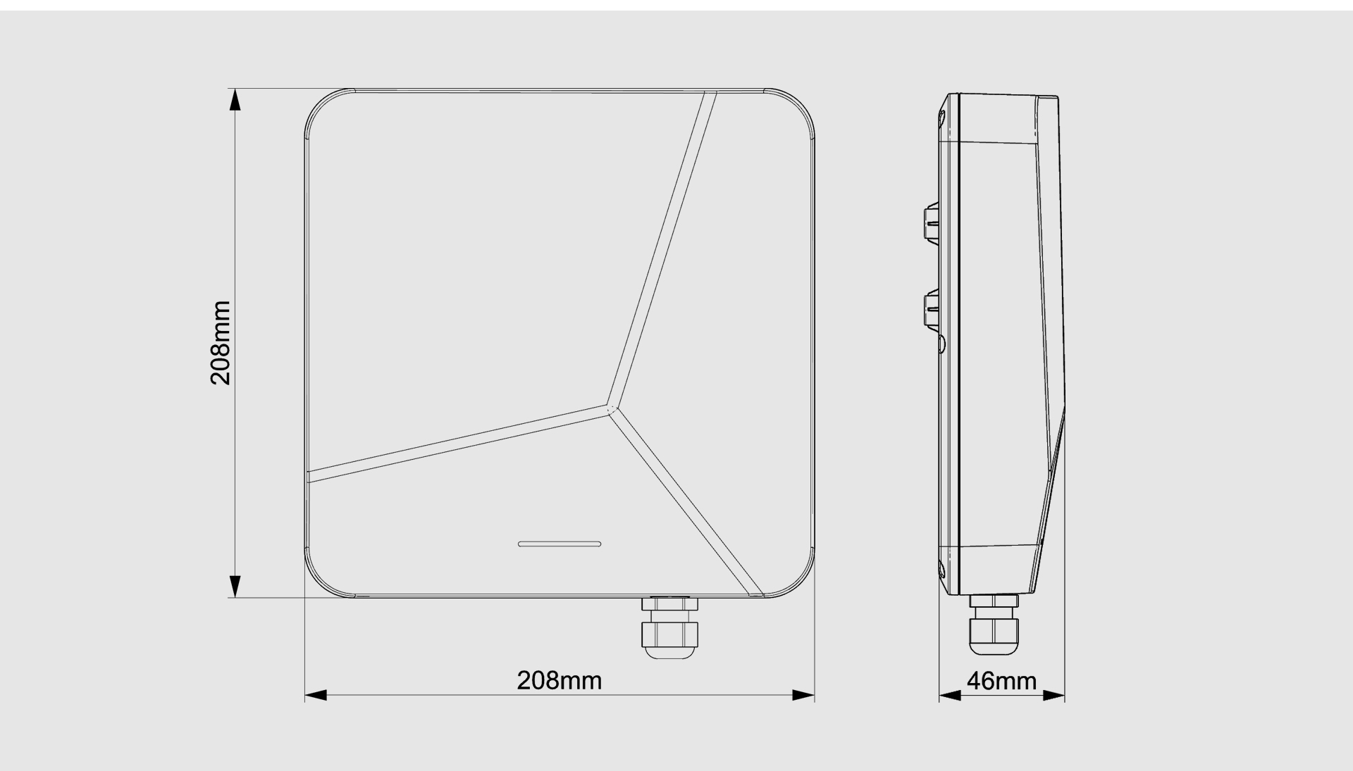 | Kích thước | 208(Dài)*208(Rộng)*46(Cao)mm | Ăng-ten phân cực tròn 8dBi (tích hợp sẵn) | ||