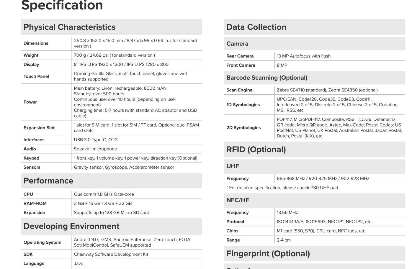 Máy tính bảng công nghiệp JT-980 RFID, tích hợp mô-đun tần số kép UHF + đầu đọc RFID 13.56MHz.